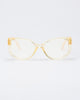 Piquing your interest with sharp angles and summery clear lemon tone Bite Done Her is a little catty but you will love her for it. Crafted in our recyclable BPA-free plastic material with integrated hinge design for recycling purposes.