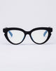 Not at all sarcastic or judgey that grin is 100% joy directed right at you. A chunky catseye frame with cutaway detailing for a little drama, Prawn With The Grins wants you to have a nice time looking chic in our all black recyclable, BPA-free material as a considerate option for our prawn-filled oceans. Available in a selection of ready-to go lens magnifications to help you zoom in life, combined with our signature blue light filtering lens technology for more longer, easier and even more pointless screen scrolling.