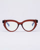 Not at all sarcastic or judgey, that grin is 100% joy directed right at you. A chunky catseye frame with cutaway detailing for a little drama, Prawn With The Grins wants you to have a nice time looking chic in our beautiful combo of raspberry and clay recyclable, BPA-free material as a considerate option for our prawn-filled oceans. Available in a selection of ready-to go lens magnifications to help you zoom in life, combined with our signature blue light filtering lens technology for more longer, easier and even more pointless screen scrolling.