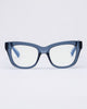 Ooph ain't she fine! A little on the lazier side but we can forgive that bc look at that sweet face. Slack Cutie's fine metal rim cuts a trapazoid-ish shape in polished rose gold and rose tips is as a subtle but directional piece. Available in a selection of ready-to go lens magnifications to help you zoom in on the fine print combined with our signature blue light filtering lens technology, to help you keep one eye mostly open and fixed on the screen sideways in bed.